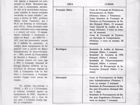 cg0054_004 | 1974 | Cont.matéria - 14 anos de pioneirismo - tabela com atividades de educação do RDC |