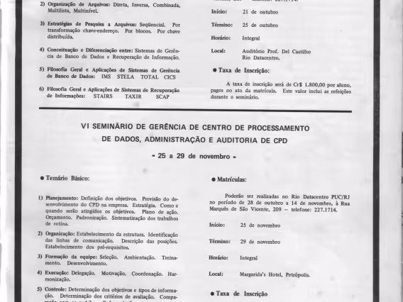 cg0054_005 | 1974 | Programa dos seminários II Seminário de Recuperação de Informações e do VI Seminário de Gerência de Centro de Processamento de Dados |