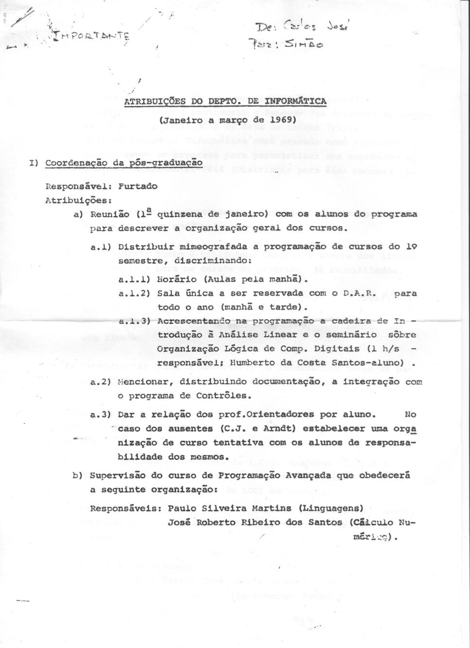1. Circular - Atribuições do Departamento de Informática - janeiro a março de 1969