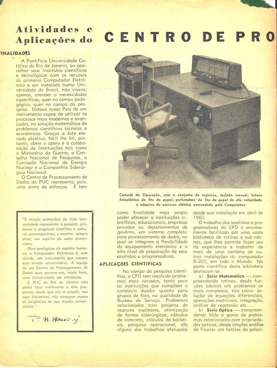 Folheto sobre o sistema (computador) Burroughs 205, descrevendo a instalação existente na PUC-Rio - p.1 - primeiro computador na PUC-Rio