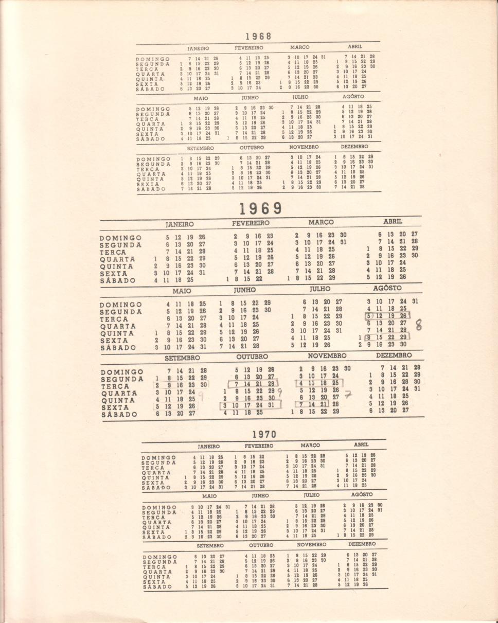 Coleção Catálogo 1969/1970 - Pós Graduação Código exclusivo cg0065_005 Data da criação Ano 1968 Data de criação Seg, 01/01/1968 - 12:00 Natureza do documento imagem Referente a Coordenação Central de Pós-Graduação e Pesquisa (CCPG) Identificação Original Catálogo 1969/1970 - Pós Graduação Descrição calendários 1968/ 1969/ 1970