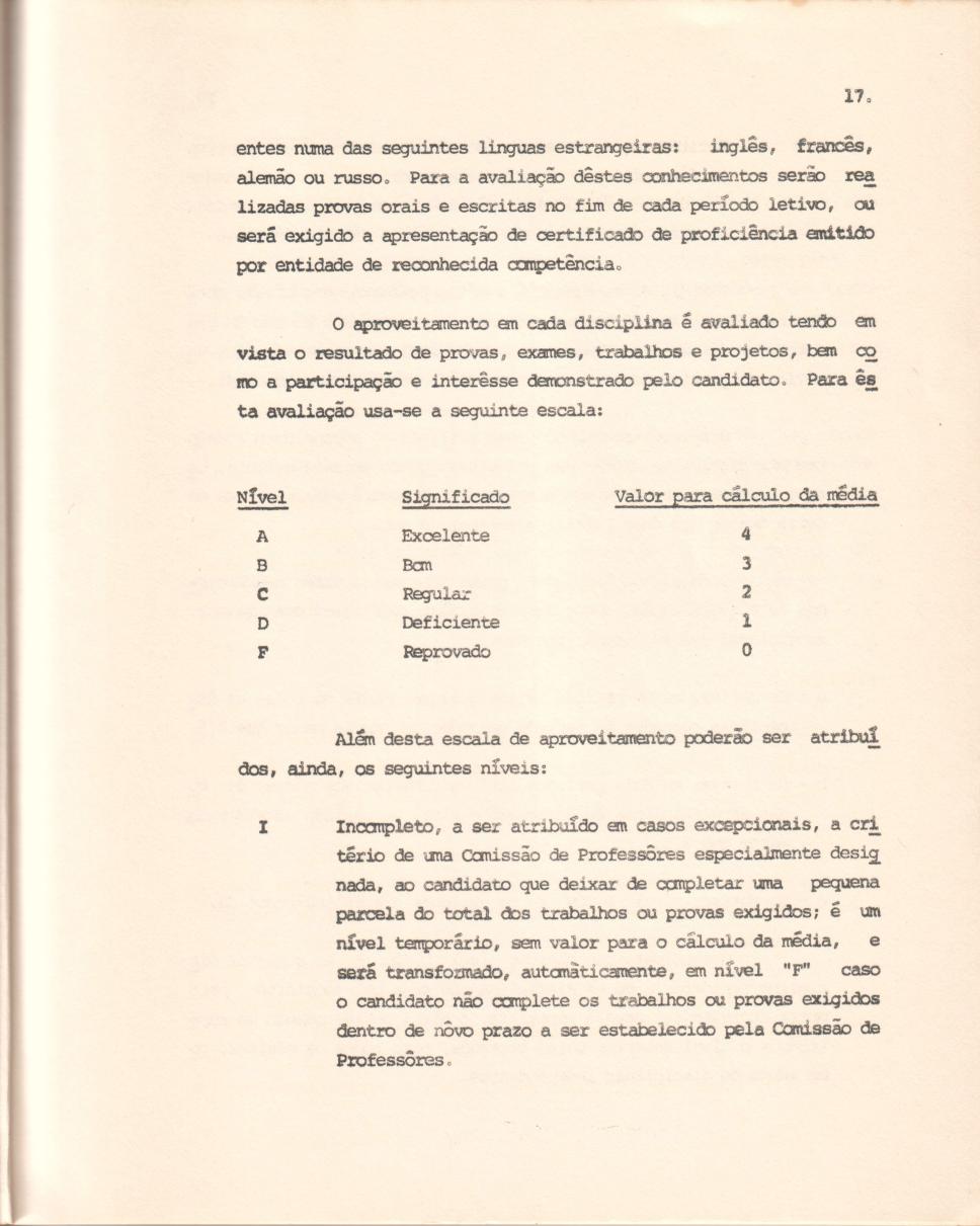 Coleção Catálogo 1969/1970 - Pós Graduação Código exclusivo cg0065_020 Data da criação Ano 1968 Data de criação Seg, 01/01/1968 - 12:00 Natureza do documento imagem Referente a Coordenação Central de Pós-Graduação e Pesquisa (CCPG) Identificação Original Catálogo 1969/1970 - Pós Graduação Descrição p.17 - Avaliação do Aproveitamento