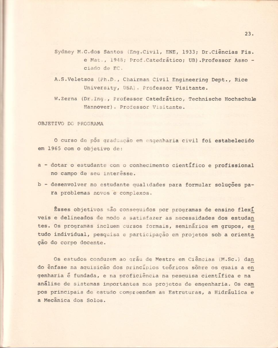 Coleção Catálogo 1969/1970 - Pós Graduação Código exclusivo cg0065_026 Data da criação Ano 1968 Data de criação Seg, 01/01/1968 - 12:00 Natureza do documento imagem Referente a Coordenação Central de Pós-Graduação e Pesquisa (CCPG) Identificação Original Catálogo 1969/1970 - Pós Graduação Descrição p.23 - Engenharia Civil