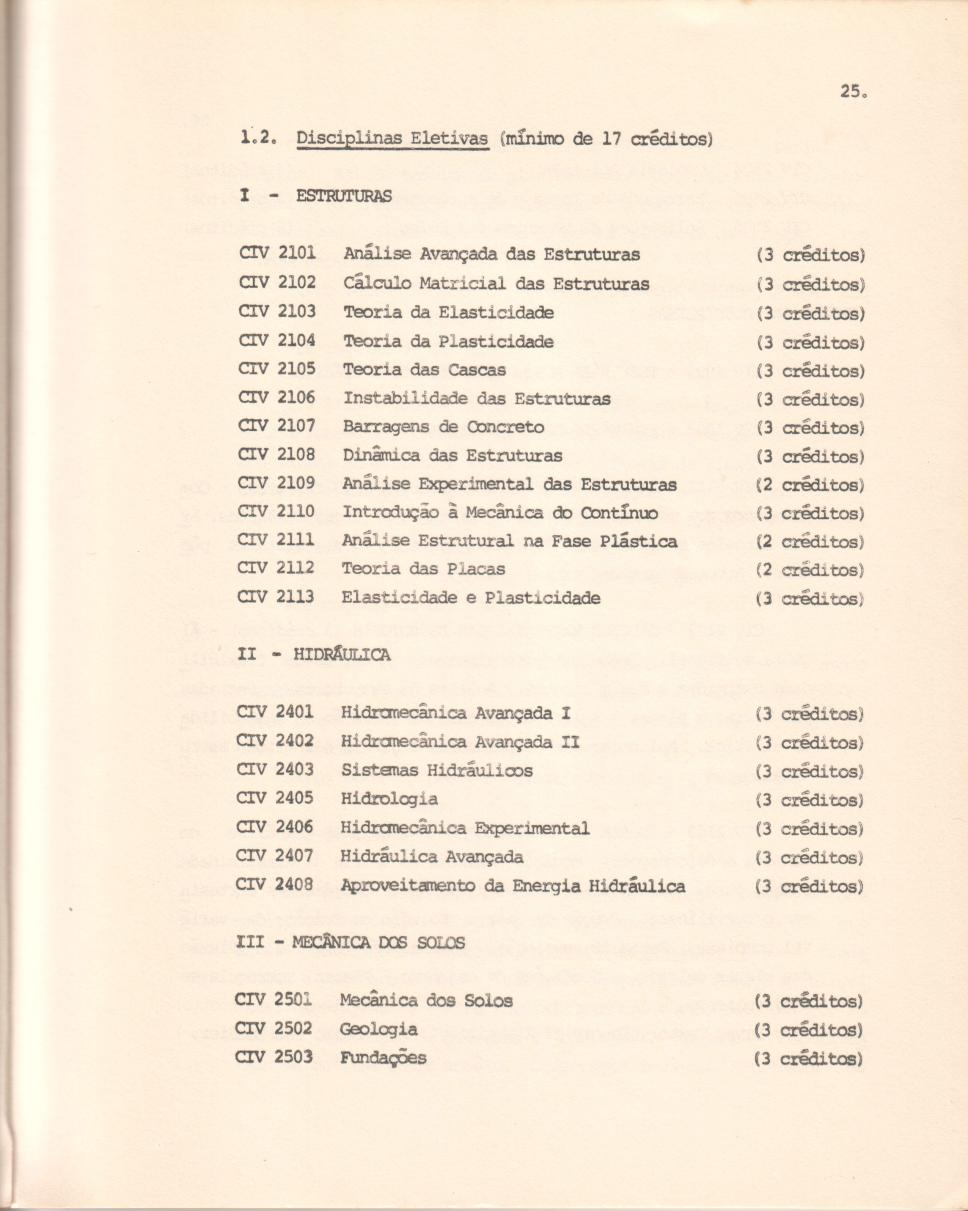 Coleção Catálogo 1969/1970 - Pós Graduação Código exclusivo cg0065_028 Data da criação Ano 1968 Data de criação Seg, 01/01/1968 - 12:00 Natureza do documento imagem Referente a Coordenação Central de Pós-Graduação e Pesquisa (CCPG) Identificação Original Catálogo 1969/1970 - Pós Graduação Descrição p.25 - Engenharia Civil - disciplinas