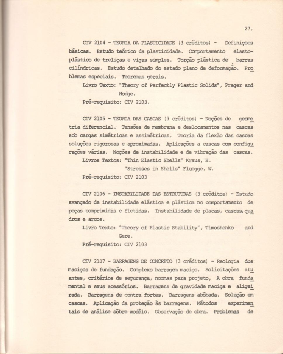 Coleção Catálogo 1969/1970 - Pós Graduação Código exclusivo cg0065_030 Data da criação Ano 1968 Data de criação Seg, 01/01/1968 - 12:00 Natureza do documento imagem Referente a Coordenação Central de Pós-Graduação e Pesquisa (CCPG) Identificação Original Catálogo 1969/1970 - Pós Graduação Descrição p.27 - Engenharia Civil - ementas das disciplinas