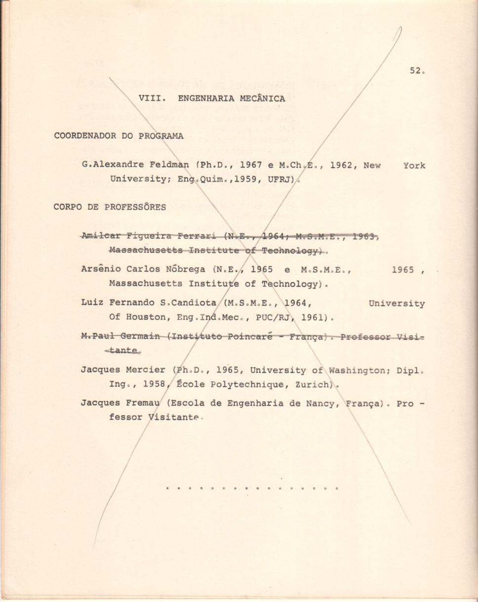 Coleção Catálogo 1969/1970 - Pós Graduação Código exclusivo cg0065_056 Data da criação Ano 1968 Data de criação Seg, 01/01/1968 - 12:00 Natureza do documento imagem Referente a Coordenação Central de Pós-Graduação e Pesquisa (CCPG) Identificação Original Catálogo 1969/1970 - Pós Graduação Descrição p.52 - Engenharia Mecânica - página riscada com correções no texto