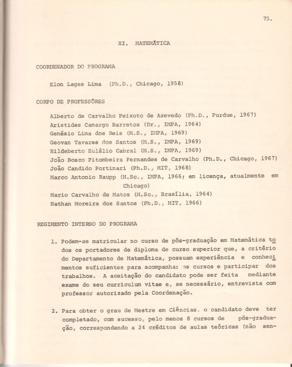 Coleção Catálogo 1969/1970 - Pós Graduação Código exclusivo cg0065_083 Data da criação Ano 1968 Data de criação Seg, 01/01/1968 - 12:00 Natureza do documento imagem Referente a Coordenação Central de Pós-Graduação e Pesquisa (CCPG) Identificação Original Catálogo 1969/1970 - Pós Graduação Descrição p.75 - Matemática