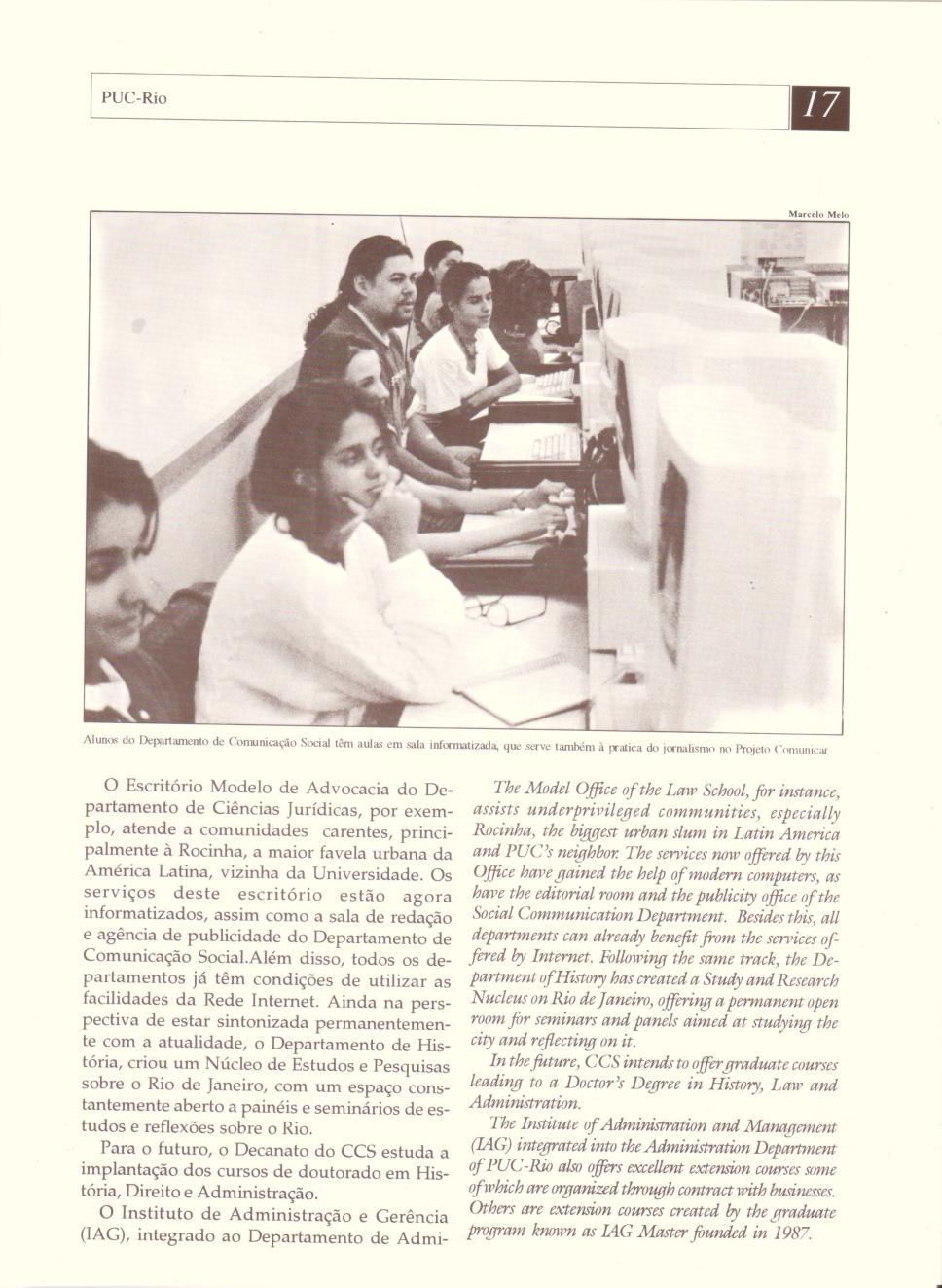 1º laboratório de Informática do Departamento de Comunicação Social, com computadores da IBM. Os alunos têm aulas práticas, que servem tambem às atividades do jornalismo no Projeto Comunicar.