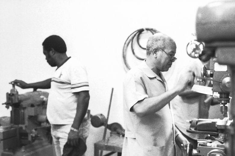 Func. n.i. usando uma plaina, João Nascimento Cruz, func. torneiro mecânico do CETUC, usando uma frezadeira