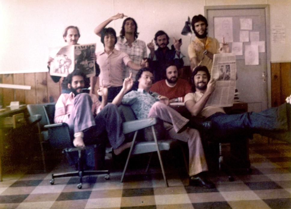 Grupo de pessoas numa sala do CETUC. Algumas lêem jornal, inclusive uma edição do Pasquim.