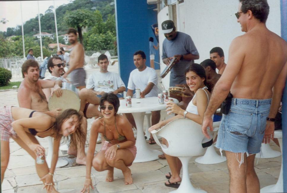 Abaixo: Ana Paula (esp. Raimundo), Renata, Raimundo Sampaio Neto, Ricardo (tambor), Rogério Passy, Silva Mello(Luis Alencar Reis,) Rodolfo Saboia, Marcelo, Francisco Faustino (sentado com pandeiro), Auderi: Sentados ao fundo, José Roberto Boisson de Marca, Weiler Finamore