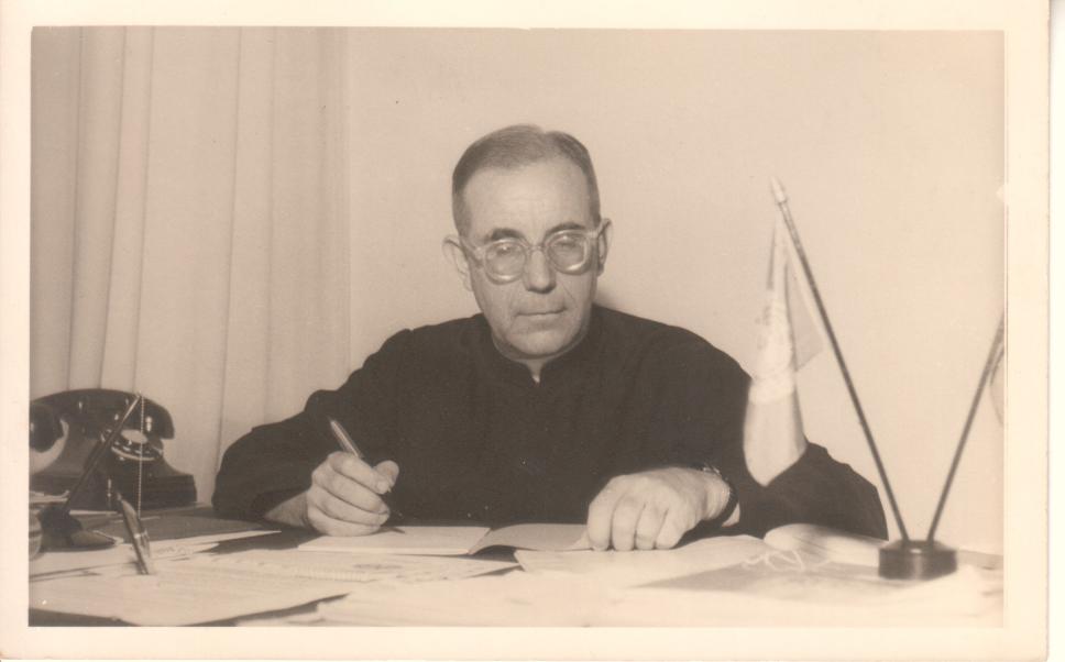 Pe. Roser em sua mesa de trabalho no Departamento de Física.