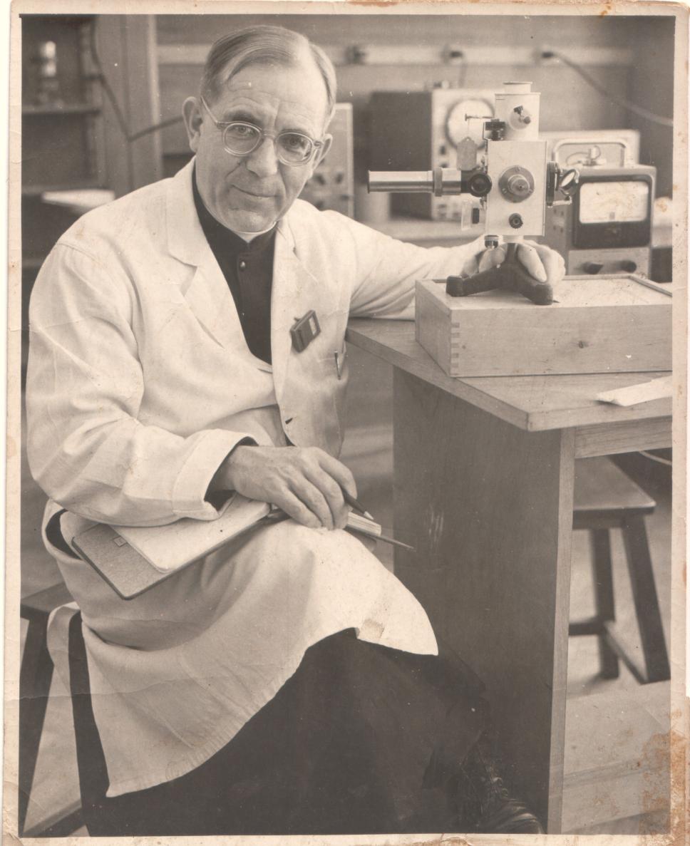 Padre Francisco Xavier Roser S.J., em seu laboratório de física atômica.
