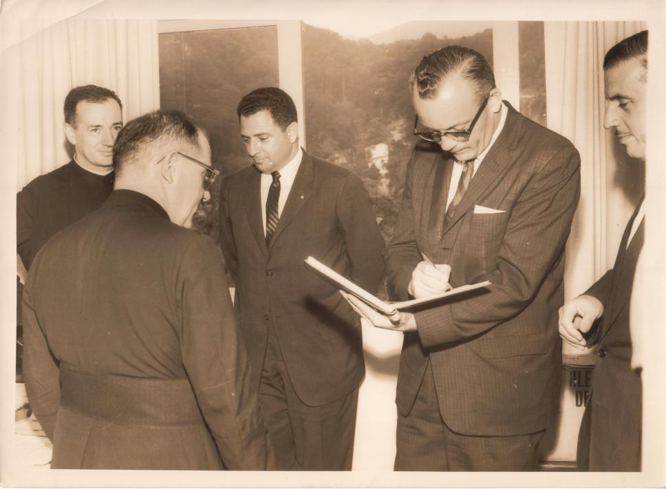 Padre Cullen, Padre Roser, o biólogo e geneticista brasileiro Crodowaldo Pavan, que foi presidente do CNPq, e mais duas pessoas não identificadas. Aparentemente assinam algum documento.