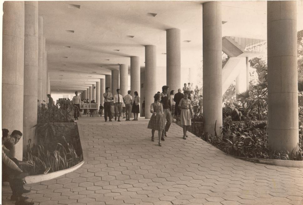 Alunos passeiam nos pilotis do Edifício Cardeal Leme.