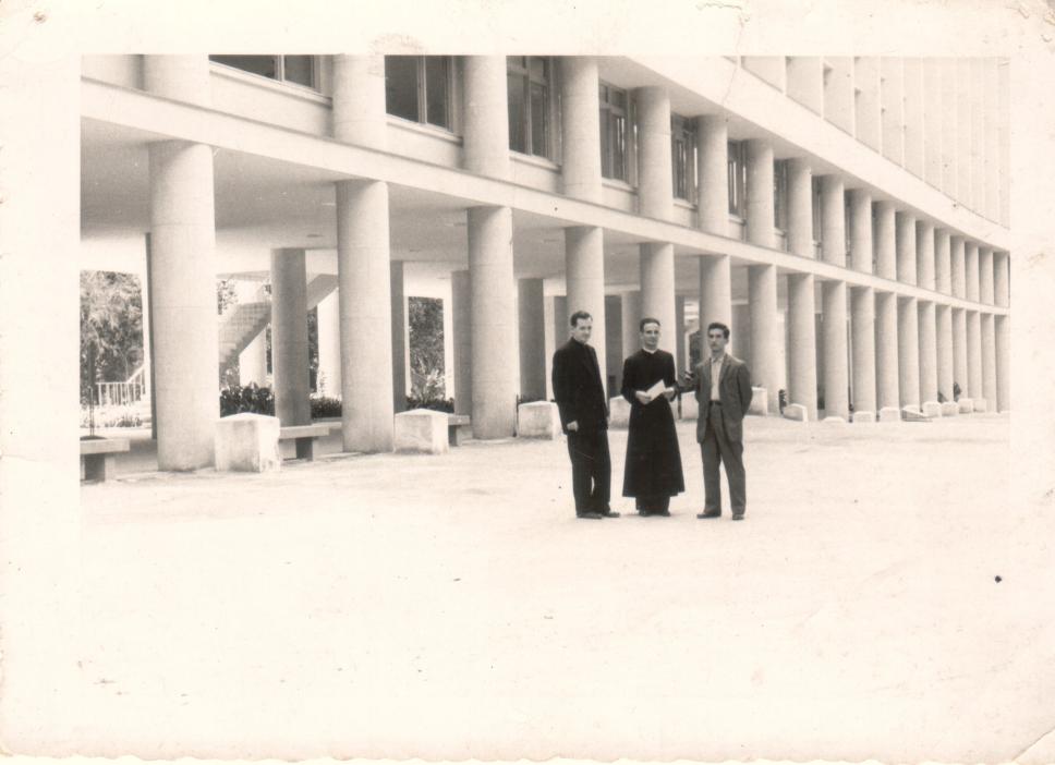 Pe.Cullen S.J. e Pe.Ormindo Viveiros de Castro S.J. nos fundos do Edifício Cardeal Leme, antes da construção do ITUC.