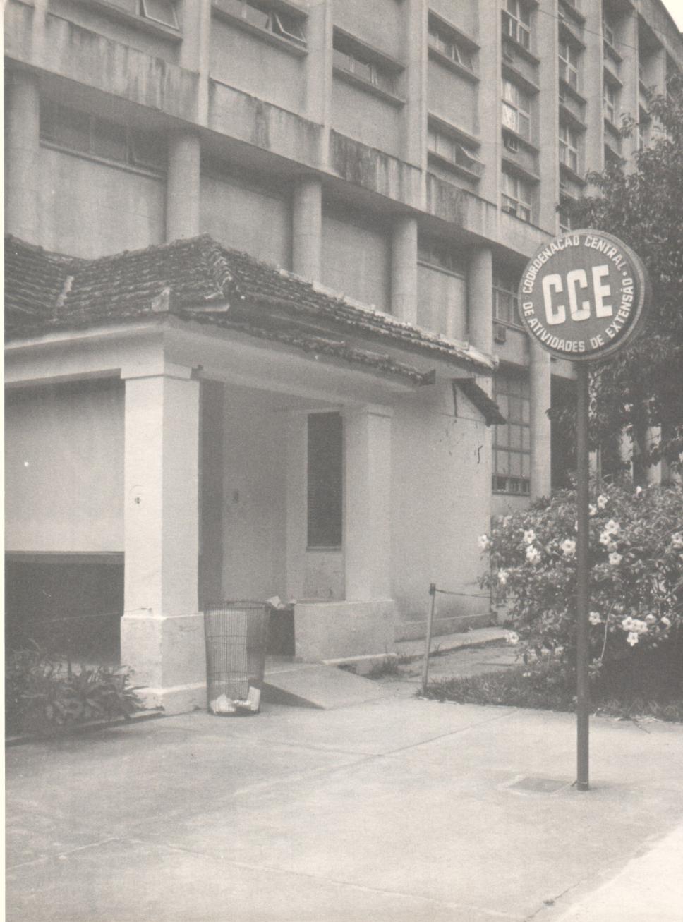 Frente da Coordenação de Cursos de Extensão - CCE - ao fundo, Bloco da Física.