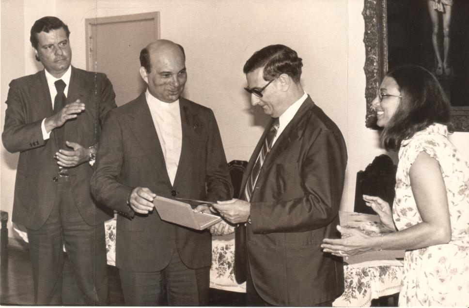 Da esq. para dir.: Ronaldo Barcelos de Pinho (Vice-Reitor para Assuntos Administrativos), pe. João Augusto Anchieta Amazonas Mac Dowell S.J., Laís de Carvalho (SRH), Josiete Gibara (Jô)