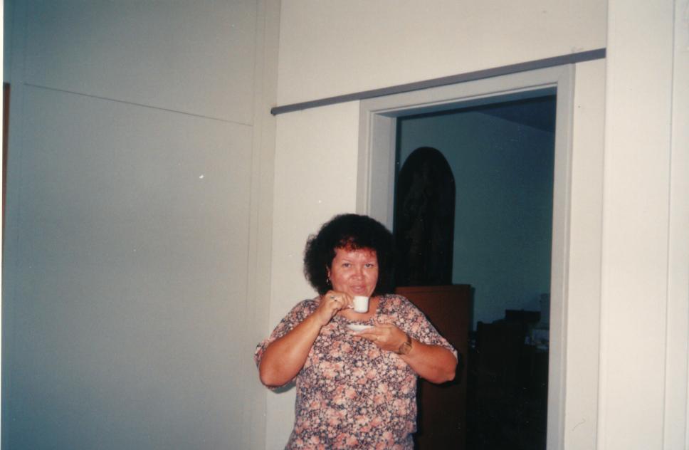 Secretária Graça tomando café.