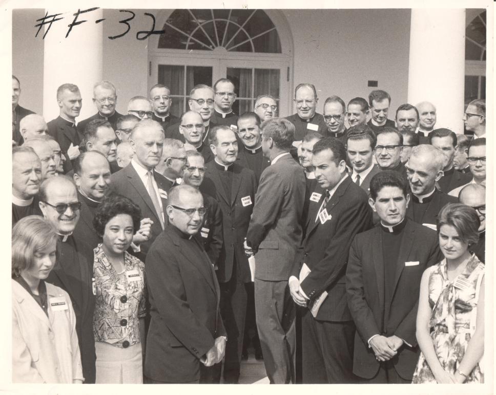 Diversos religiosos com John Kennedy na Casa Branca, em Washington, D.C..