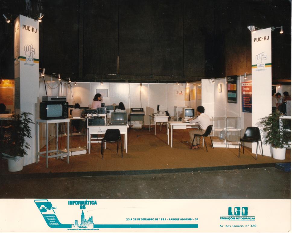 23 a 29 de setembro de 1985 - Parque Anhembi - SP - stand da PUC-RJ, com microcomputadores