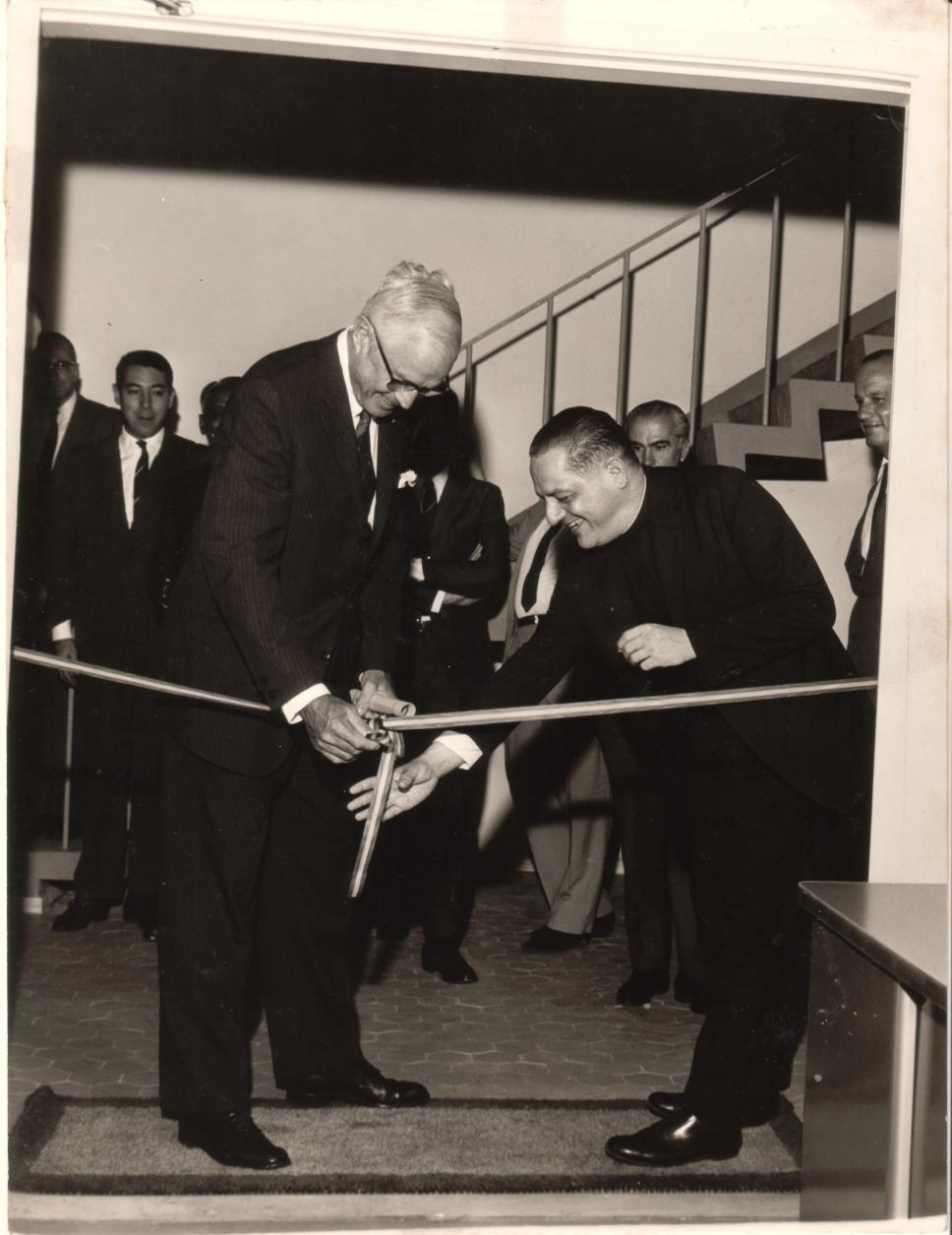 Inauguração do Rio Datacentro pelo presidente do Conselho Diretor da IBM, Thomas John Watson Jr., e o reitor pe. Laércio Dias de Moura S.J.
