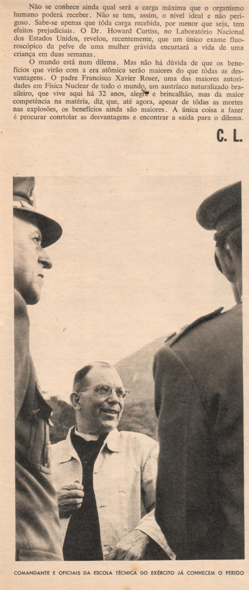 Revista Manchete no. 335: p.25 - Padre Roser ensina radioatividade às Forças Armadas. Com foto.