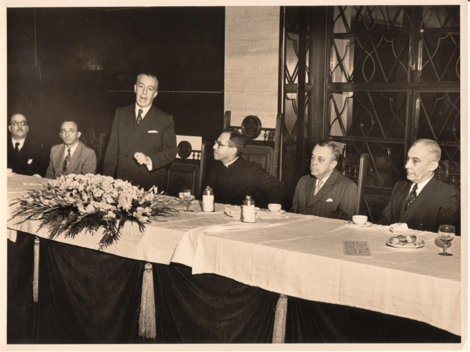 Lançamento da Campanha Financeira da Universidade. O símbolo no espaldar das cadeiras é da medicina.