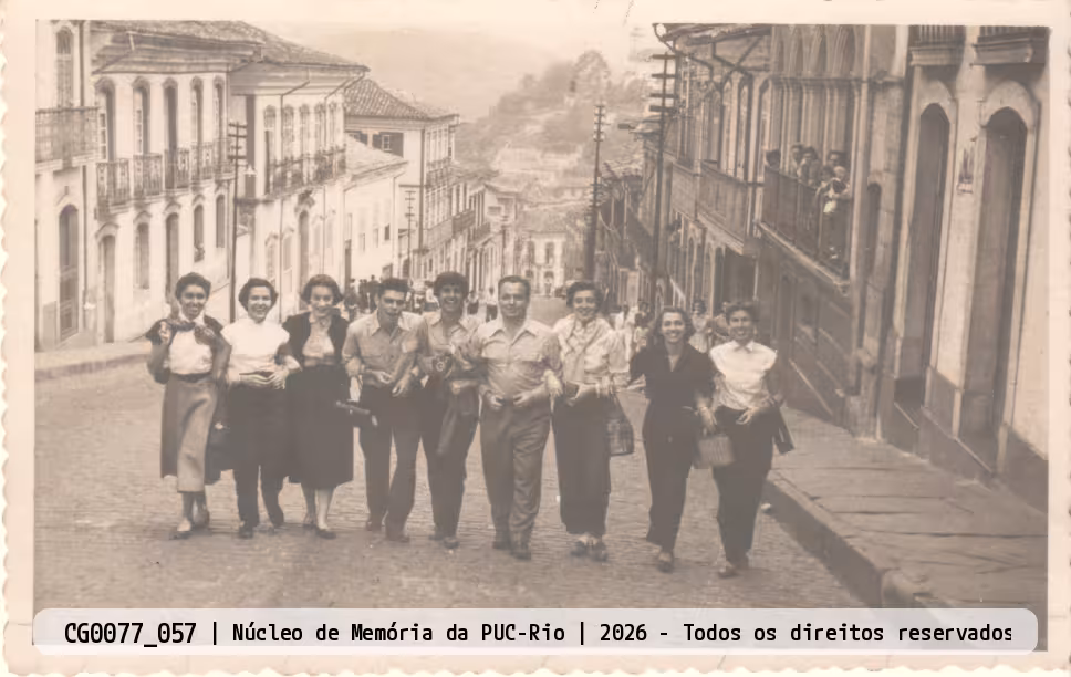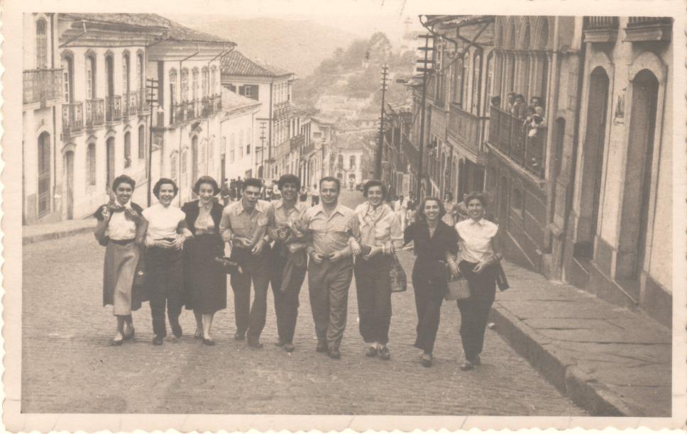 Alunos dos cursos de Geografia e História da Faculdade de Filosofia em viagem a Ouro Preto. Alunas em calças compridas.