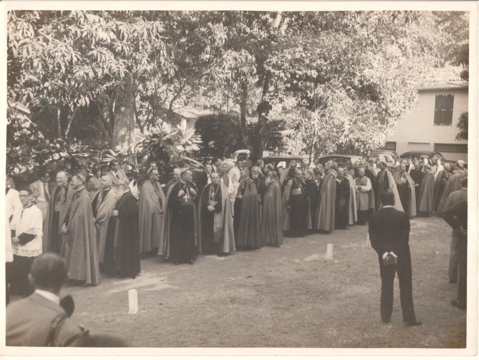 Inauguração do novo campus na Gávea da PUC-Rio durante o Congresso Eucarístico Internacional. Cardeais e bispos convidados.