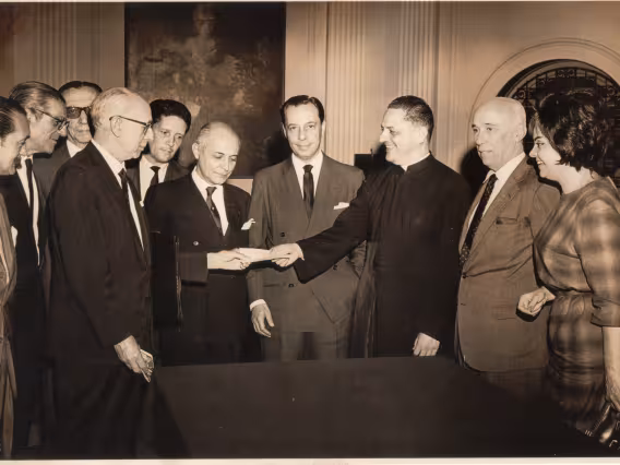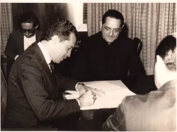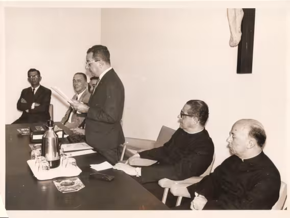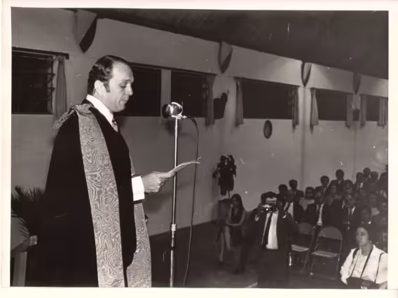 cg0078_056 | 9/3/1962 | Posse do Pe. Laércio Dias de Moura S.J. no cargo de Reitor da PUC-Rio. |