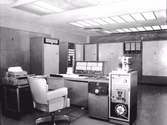 cg0078_075 | 1965 | Computador Burroughs no laboratório do Rio Datacentro, ainda no Ed. Cardeal Leme. |