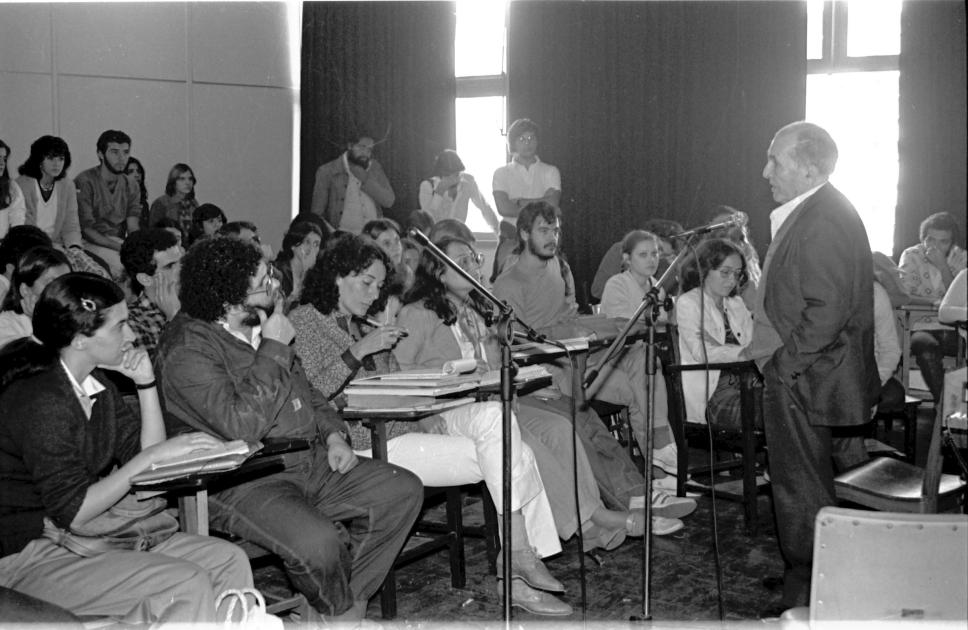 Palestra de Luis Carlos Prestes para duas turmas de História e Cinema, na sala K506.