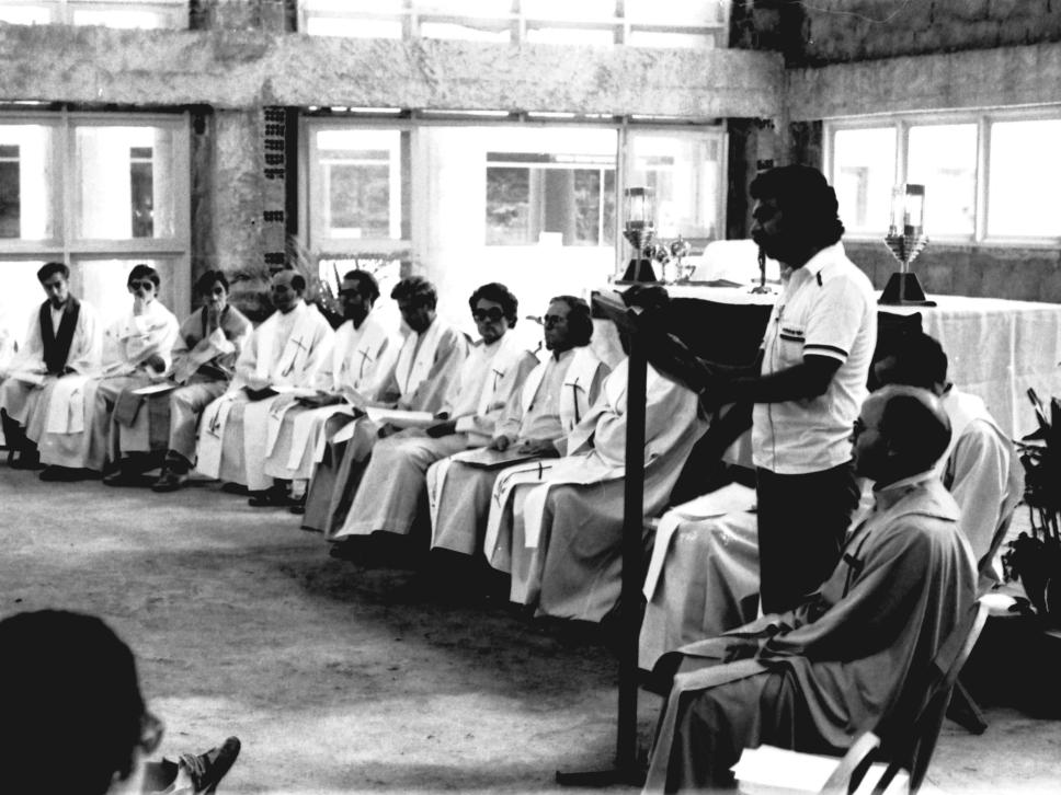 Missa celebrada por vários padres da PUC-Rio em homenagem à Dom Oscar Romero (arcebispo de San Salvador assassinado), ao padre jesuíta Luis Espinal (assassinado na Bolívia) e ao sub-diácono Júlio César (agente de pastoral da Diocese de Valença/RJ, vítima de espancamento).