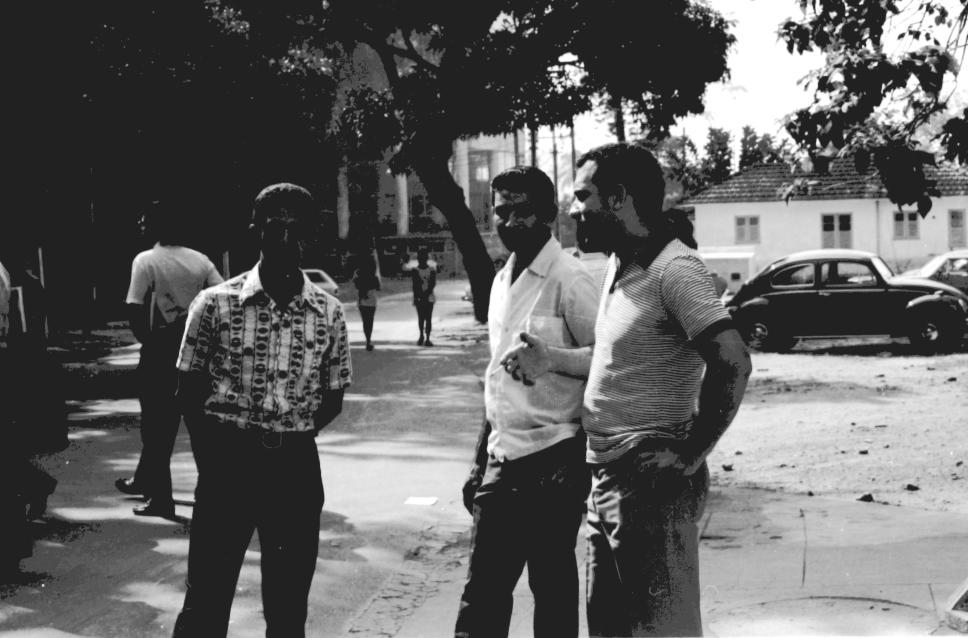 Funcionários após missa de Páscoa celebrada pelo pe. Pedro Belisário Velloso Rebello S.J. na Capela da PUC nos pilotis Ed.Cardeal Leme, especialmente dedicada aos funcionários da Divisão de Manutenção Técnica.