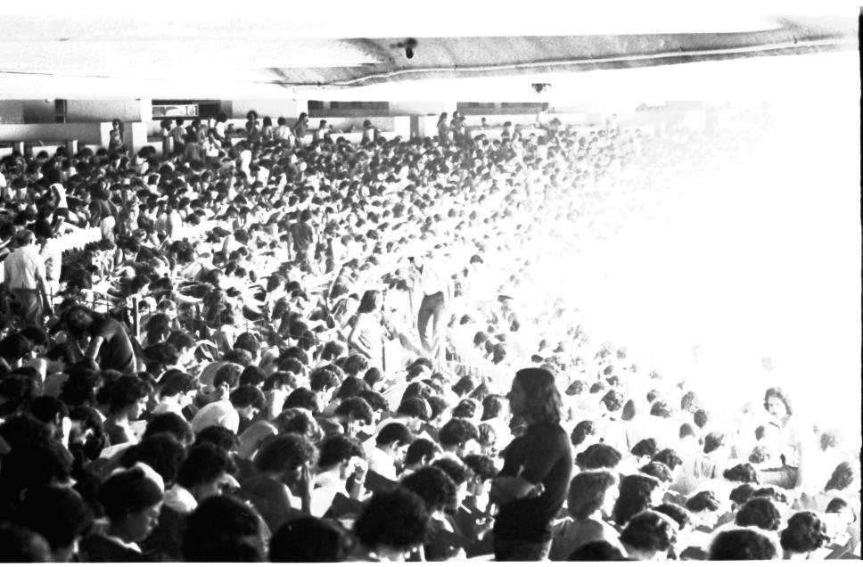 Alunos na arquibancada por ocasião da prova de vestibular.