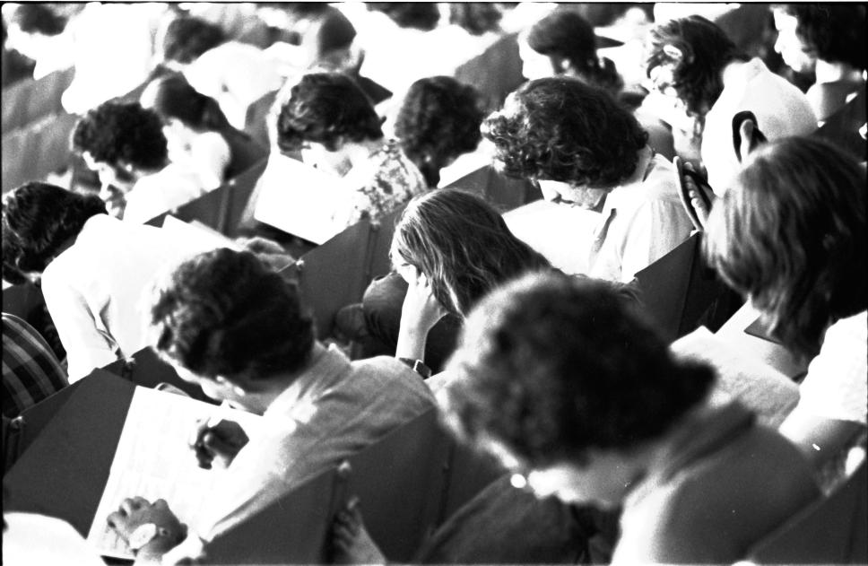 Candidatos nas arquibancadas por ocasião da prova de vestibular.