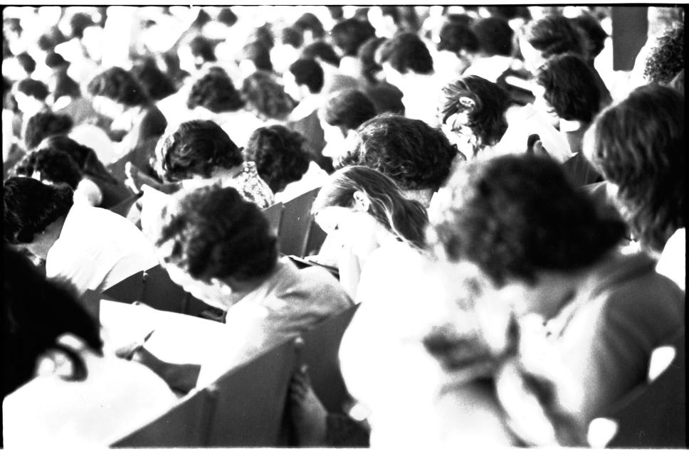 Candidatos nas arquibancadas por ocasião da prova de vestibular.