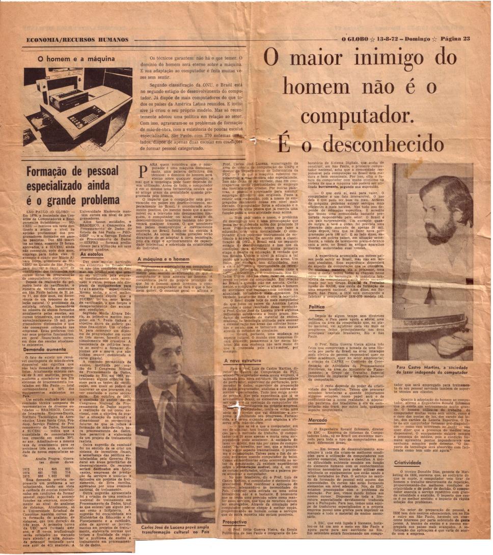 Jornal O Globo - Economia/ Recursos Humanos - Domingo, p.23, 13-8-72