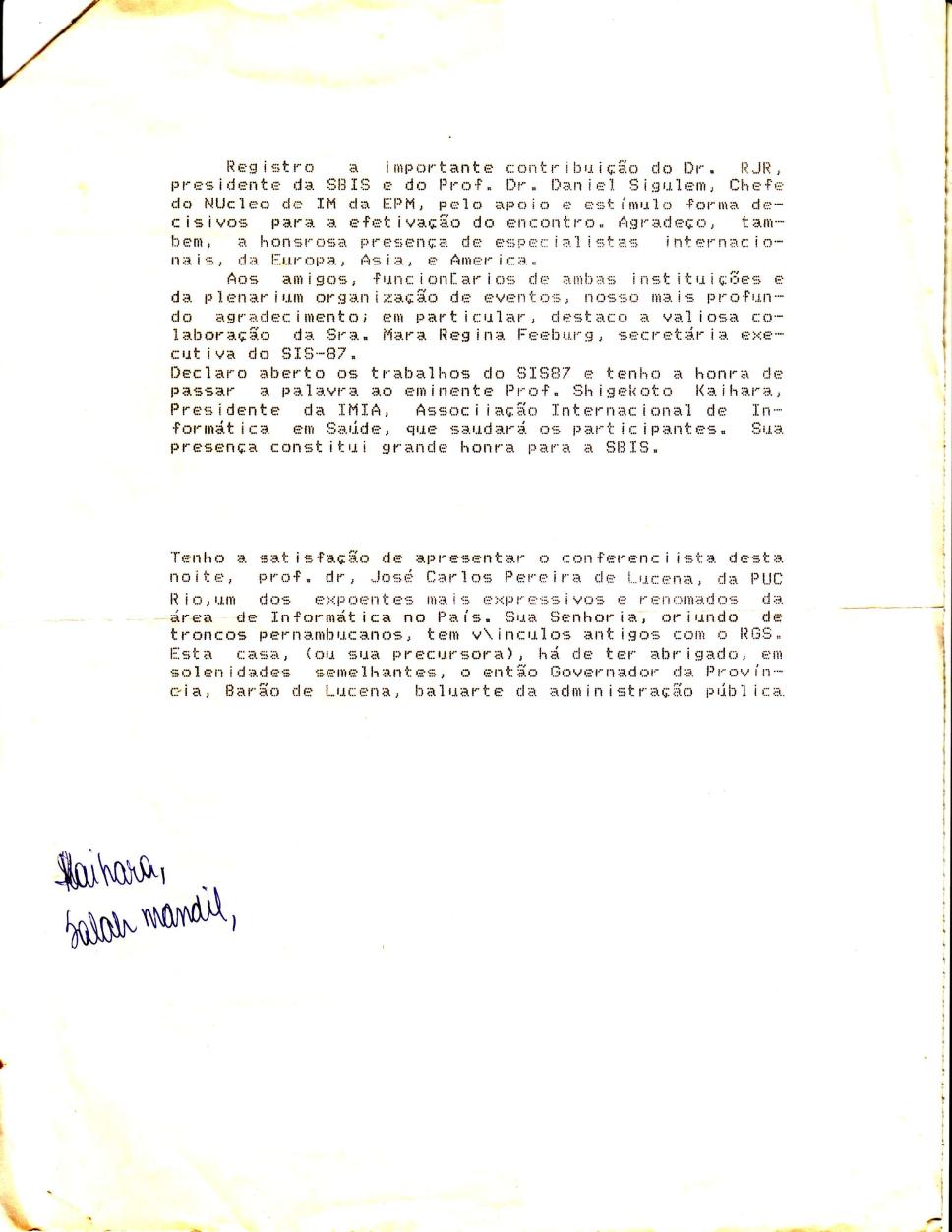 Texto lido no evento da Sociedade Brasileira de Informática em Saúde, ocorrido no Teatro São Pedro, em Porto Alegre/RS, apresentando o Prof. Carlos José Pereira de Lucena como conferencista, p.2