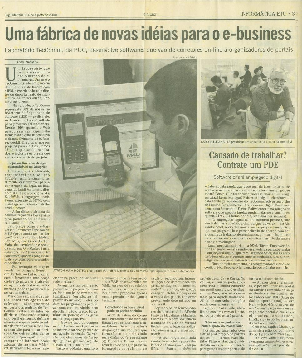 Jornal O Globo - Caderno Informática ETC, p.3, 14/08/2000