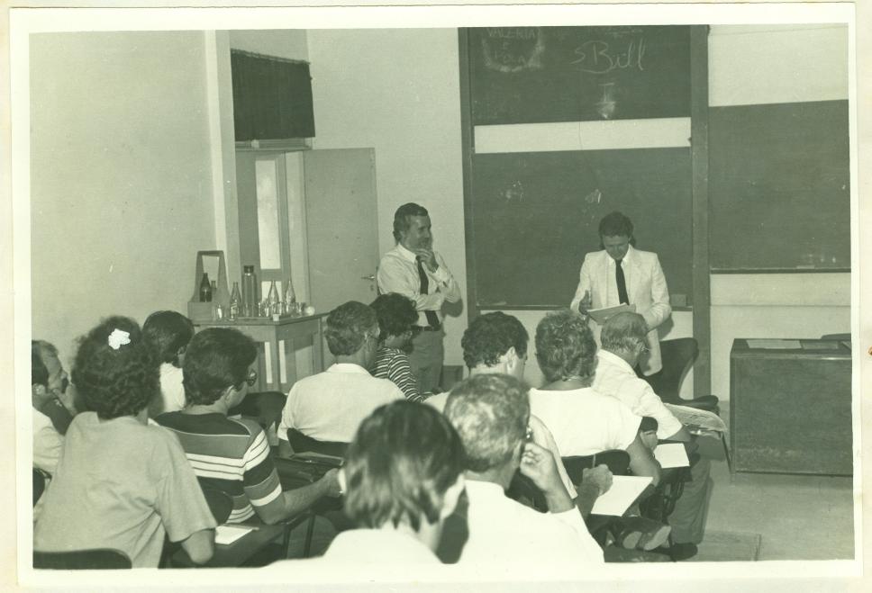 Prof. Carlos Lucena, alunos e um palestrante em sala de aula.