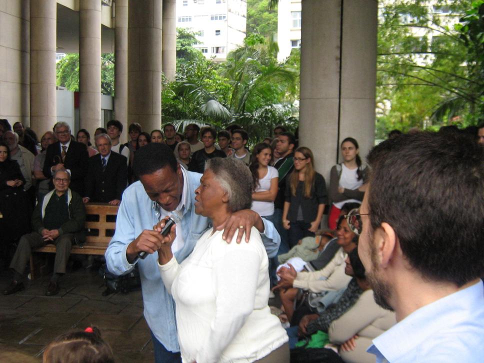 Evento nos pilotis com o grupo Raízes Serranas, do Morro da Serrinha. Aula Recital de Jongo e Samba.