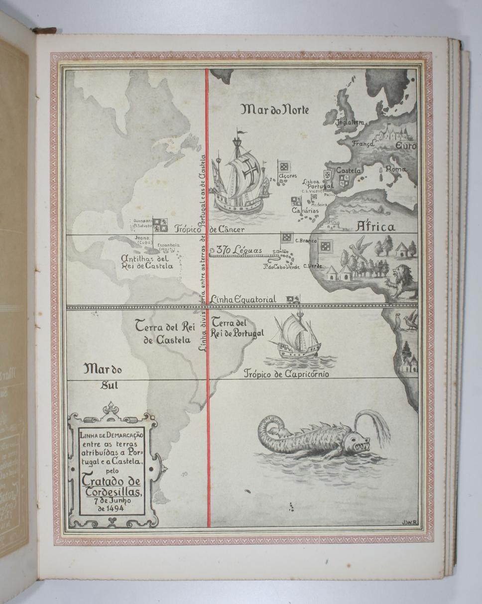 Mapa: Linha de Demarcação entre as terras atribuídas a Portugal e Castela pelo Tratado de Tordesilhas, 7 de junho de 1494. SOARES, José Carlos de Macedo. Fronteiras do Brasil no Regime Colonial. Rio de Janeiro: José Olympio, 1939.
