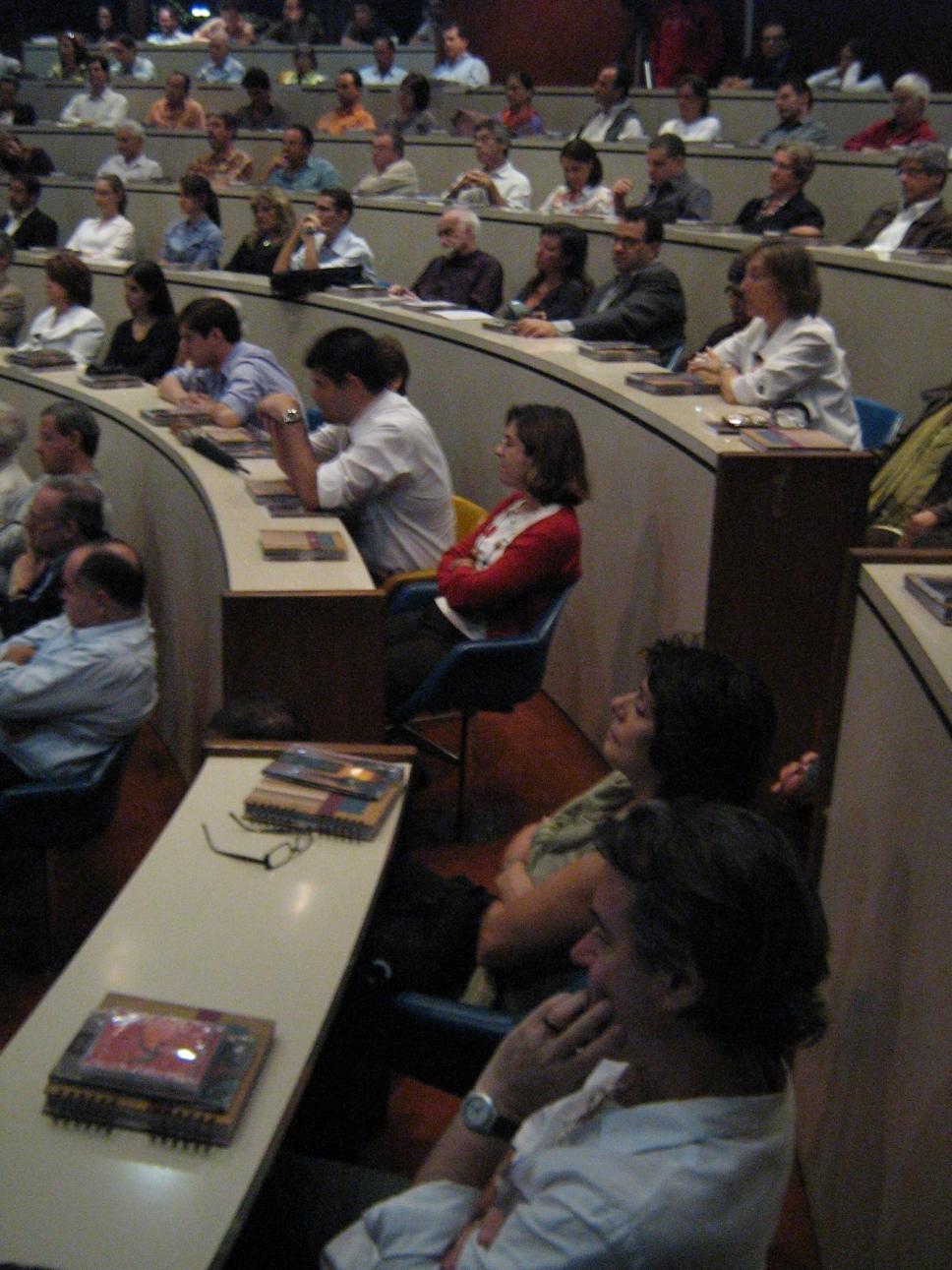 Assembleia Universitária - plateia durante o discurso do Reitor Pe. Jesús Hortal Sànchez S.J.