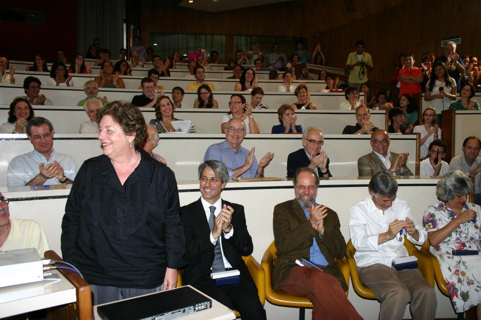 Cerimônia de entrega da Medalha Dom Helder Camara. A profa. Margarida de Souza Neves (HIS) se encaminha para receber a sua medalha.