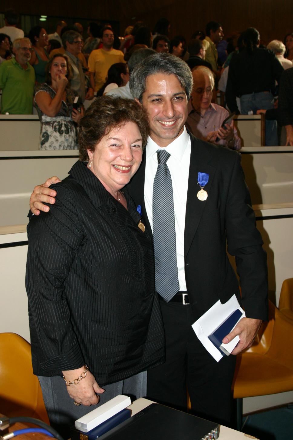 Movimentação após o encerramento da Assembleia Universitária. A profa. Margarida Neves e o prof. Alessandro Molon.