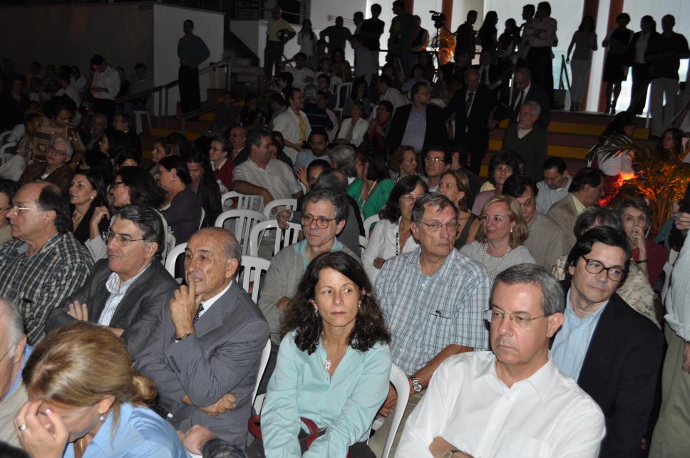 Movimentação antes da posse. Plateia com professores, funcionários, alunos e convidados.