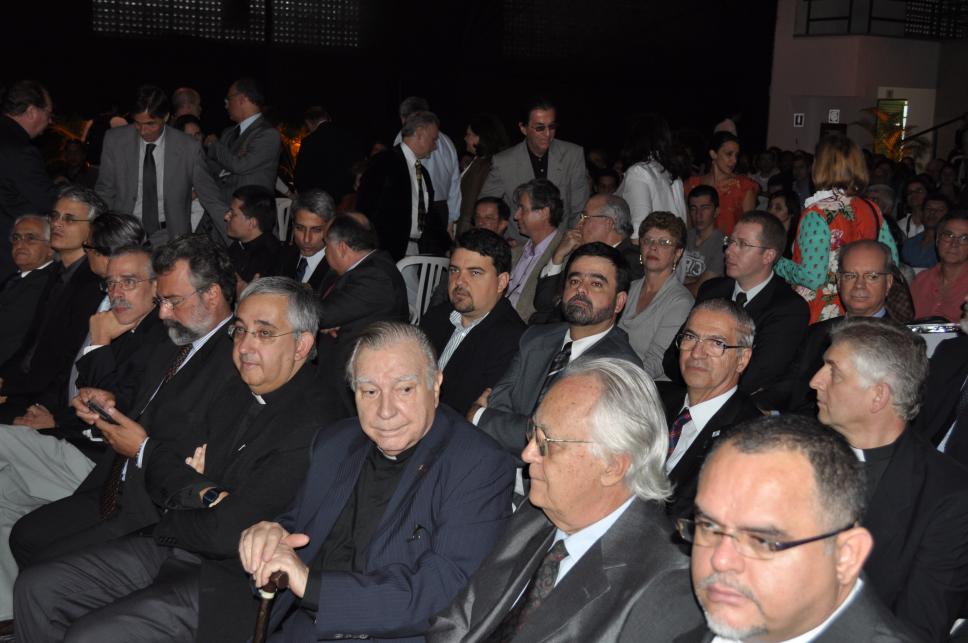 Movimentação antes da posse. Plateia com professores, funcionários, alunos e convidados.