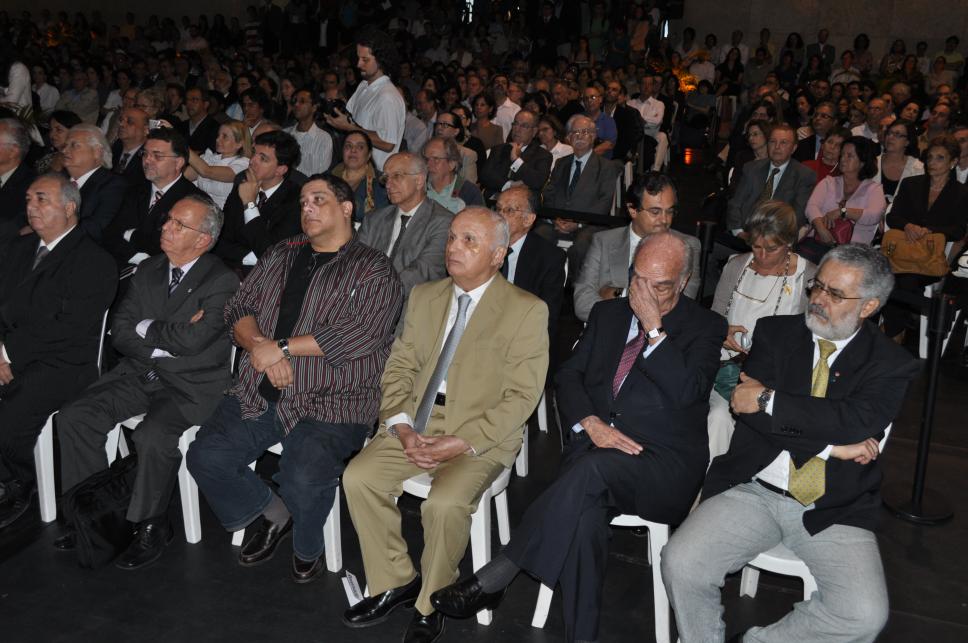 Movimentação antes da posse. Plateia com professores, funcionários, alunos e convidados.